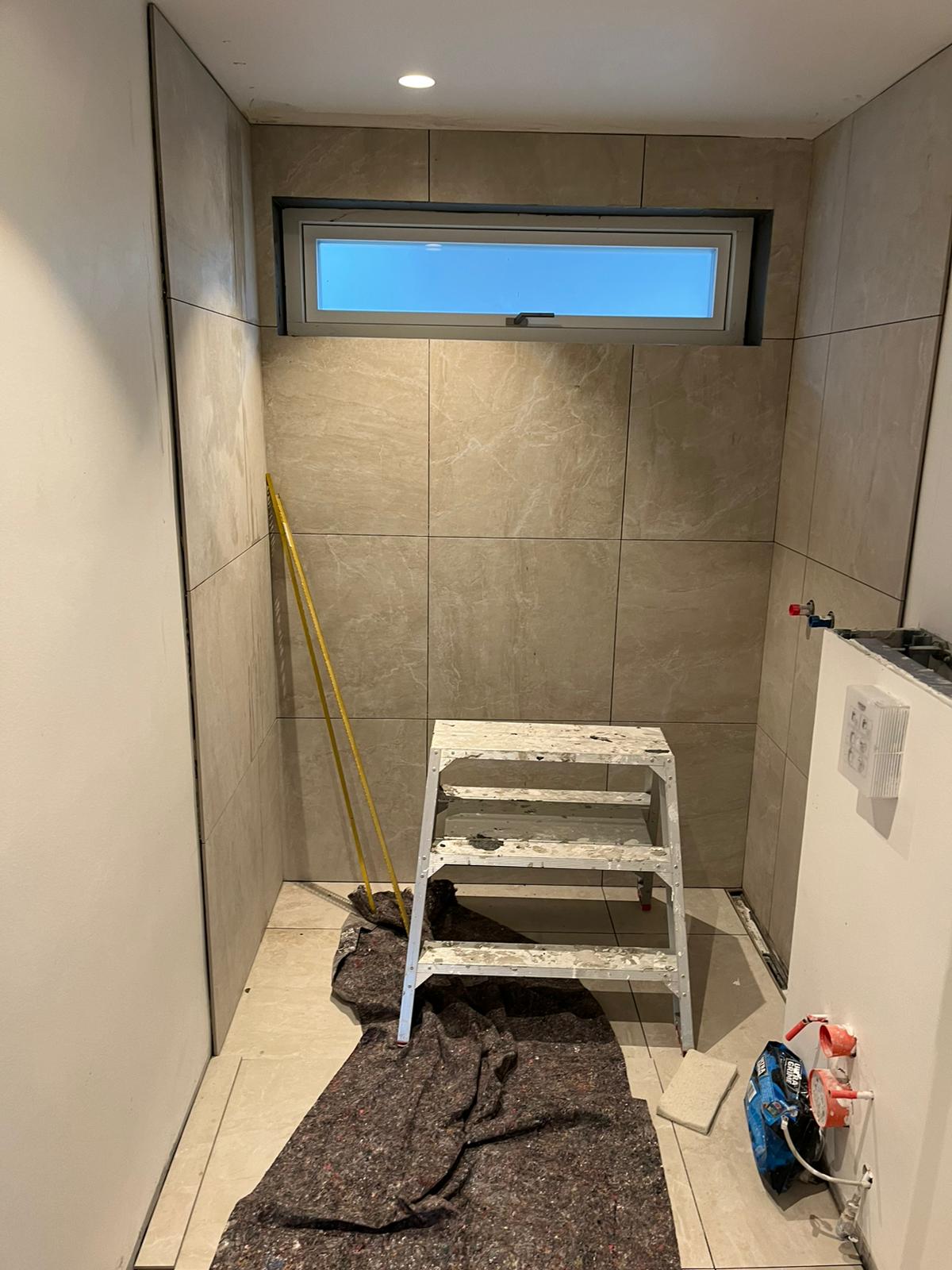 Badeværelse med storformat fliser